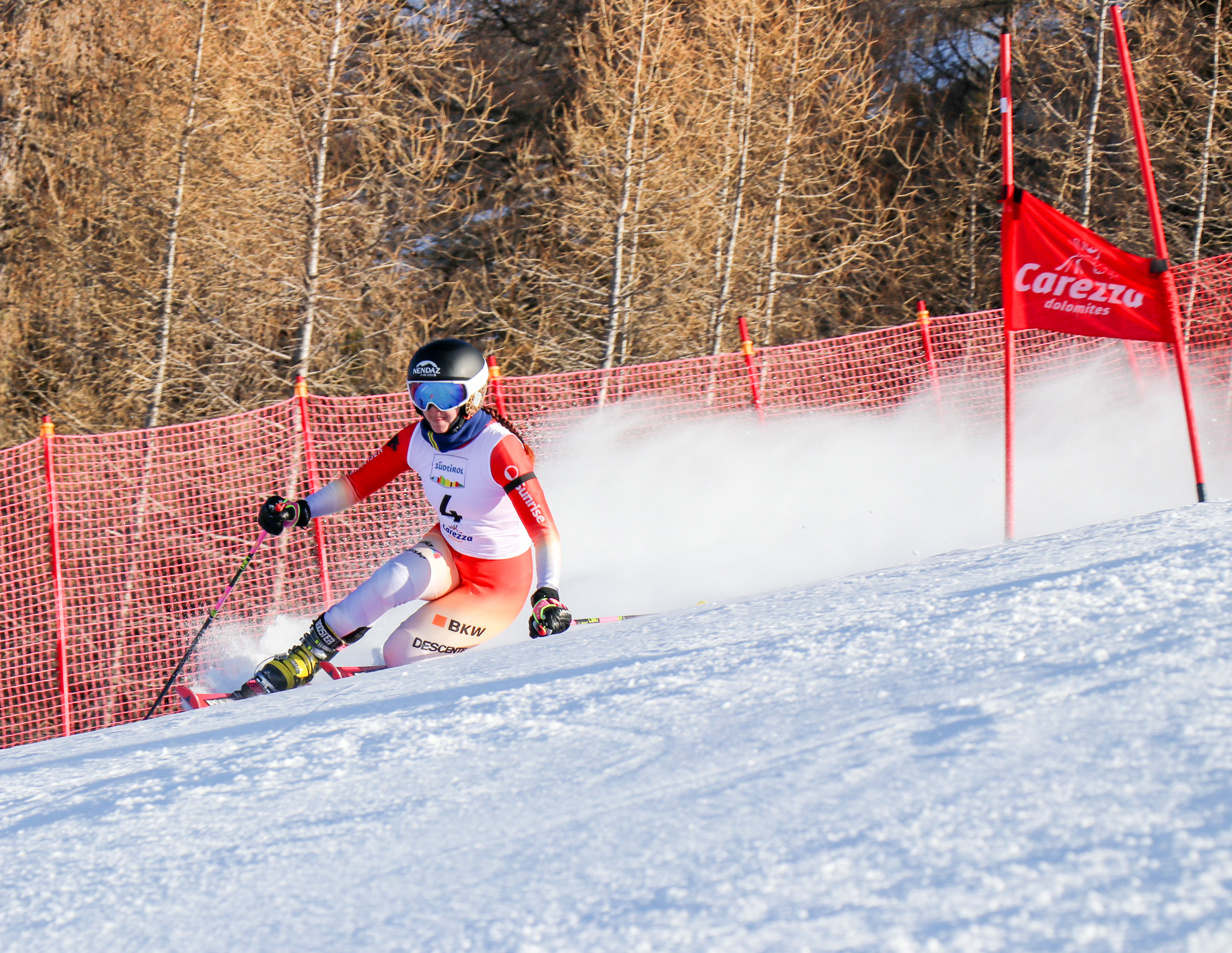 Platz zwei belegte Jasmin Taylor, die nach dem ersten Durchgang noch geführt hatte. Taylors Gesamtzeit lag bei 2.16,62 Minuten. Die Britin hat in Carezza Dolomites bereits drei Siege zu Buche stehen – gut möglich, dass am Donnerstag der vierte dazu kommt. Das Podium komplettierte wie bei den Männern eine Französin, und zwar Augustine Carliez. Sie büßte 2,79 Sekunden auf Lathion ein. Eine der Mitfavoritinnen, Argeline Tan Bouquet aus Frankreich, verletzte sich im ersten Durchgang und schied aus.